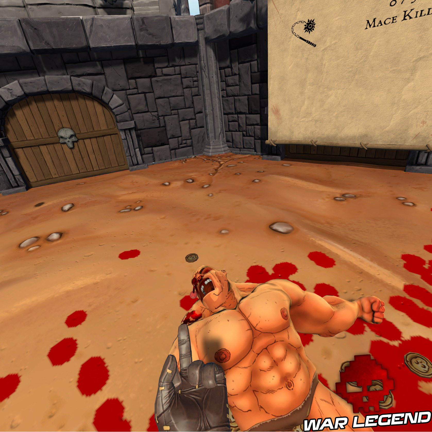 Les armes sont plutôt étranges puisqu’elles sont malléables comme du caoutchouc mais, lorsque vous les écraserez sur la tronche d’un gladiateur, vous constaterez que ça n’empêche en rien leur puissance. Je ne suis pas nécessairement convaincu par ce choix, non pas qu’il gène le gameplay mais il rompt quelque peu l’immersion en donnant l’impression qu’on tient des gourdins gonflables d’un quelconque parc d’attractions.