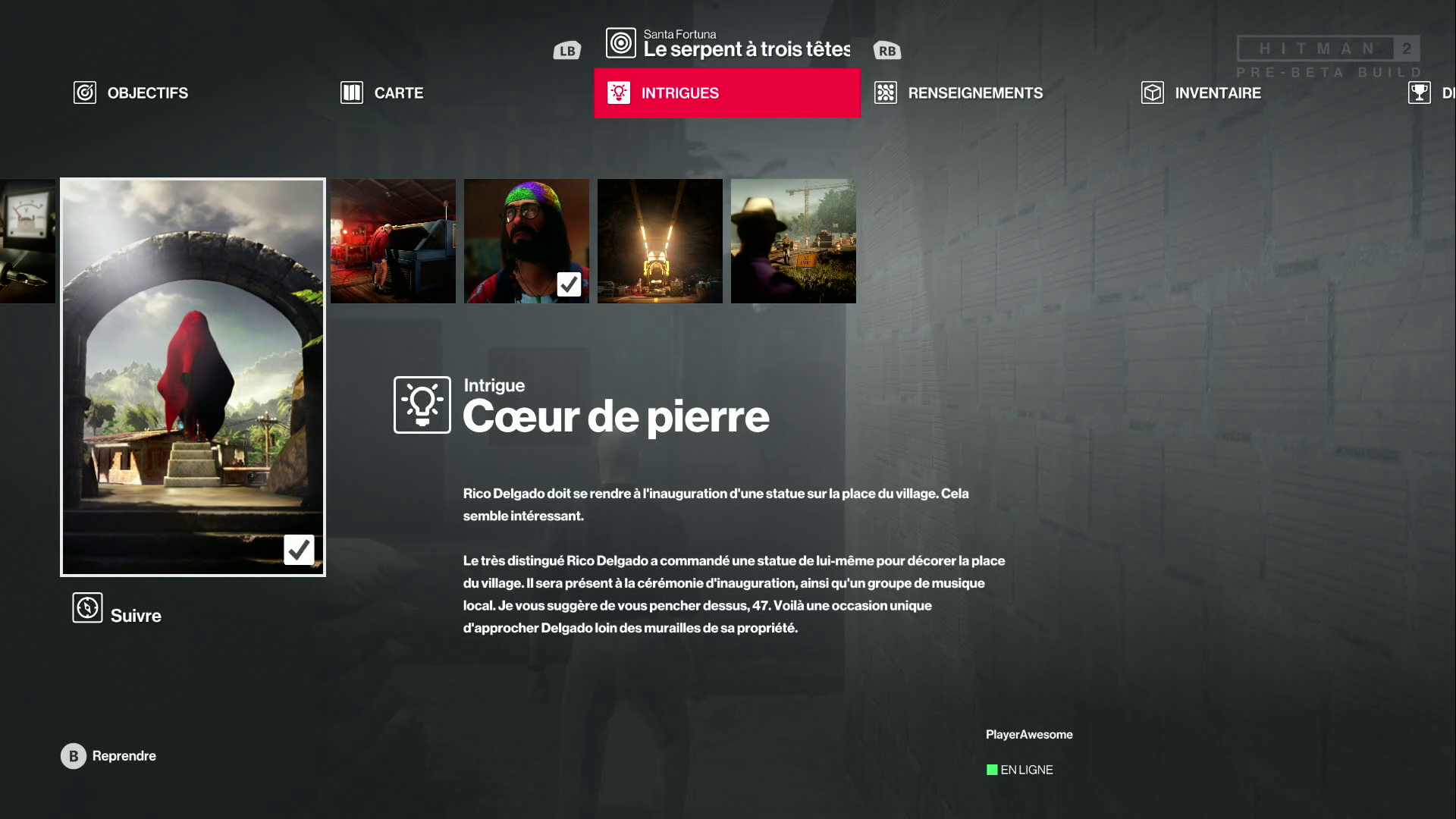 Alors que j’étais parti pour tuer la troisième cible et ayant déjà quelques indices à son sujet (une histoire de lettre d’amour, si si), ma session se termine. Je me rends compte que j’ai pas mal traîné, mais j’ai pu tester à peu près ce que je voulais. Le plus gros morceau de cette session était à venir.
