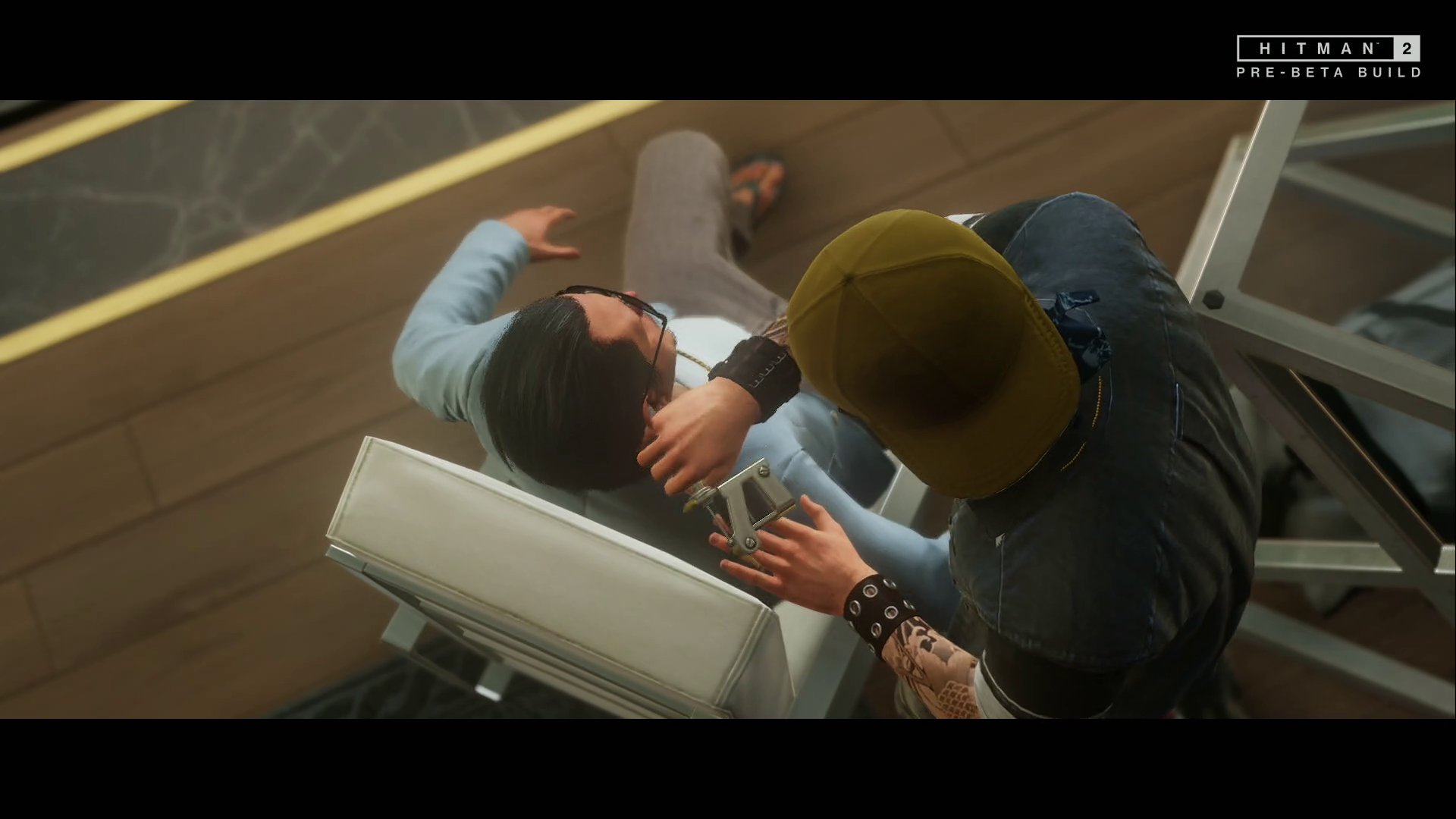 Quand le joueur décide de s’engager dans une narration construite, son enchaînement est toujours bien conçu et naturel. Une fois au travail, 47 finit par être seul avec la cible. Après lui avoir fait des gribouillis dans le cou, on peut enfin décider de lui planter le dermographe dans l’oreille, afin de « marquer les esprits ».