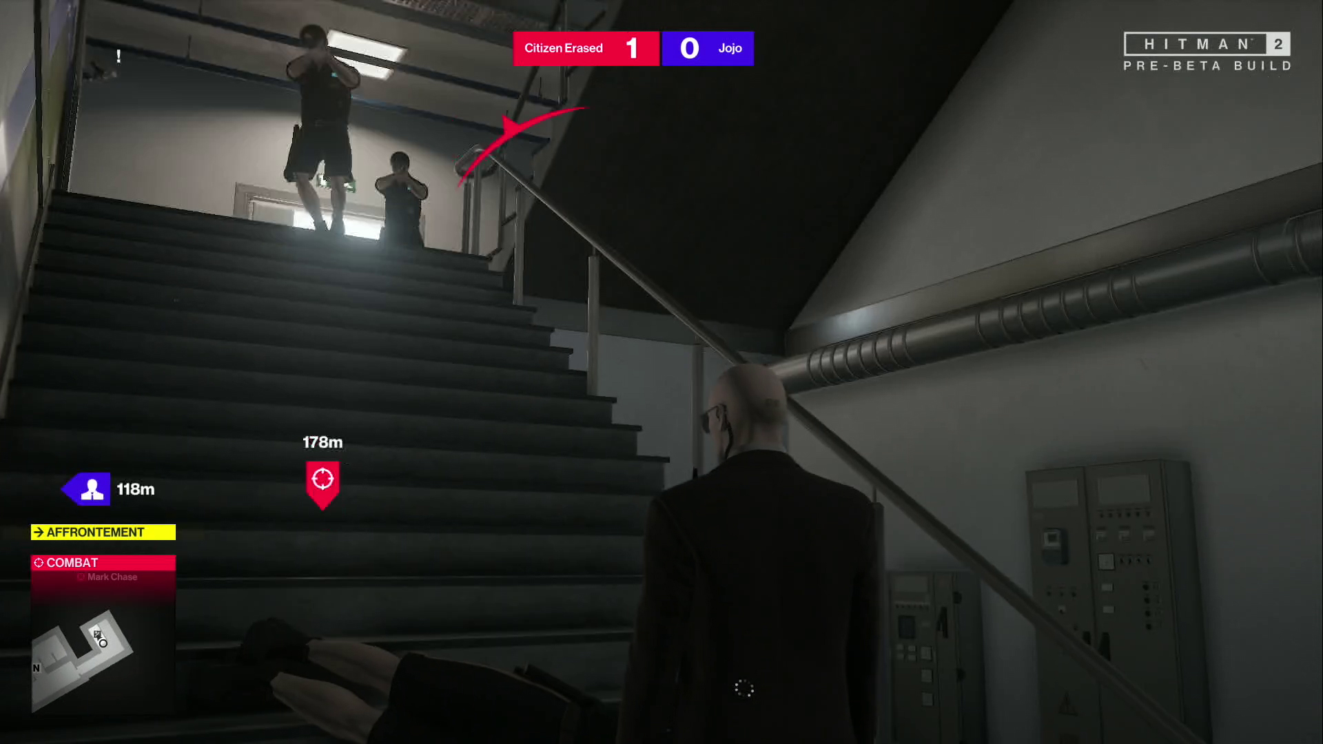 Le bail est simple : vous et votre adversaire êtes lâchés dans un des niveaux du jeu (ce qui comprend ceux d’Hitman 2016) et une cible est générée au hasard dans le niveau. Le premier qui la tue sans être vue et sans que le corps soit découvert dans les 15 secondes gagne un point. L’autre joueur a alors un temps limité pour tuer sa cible, sinon, elle ne gagne rien.