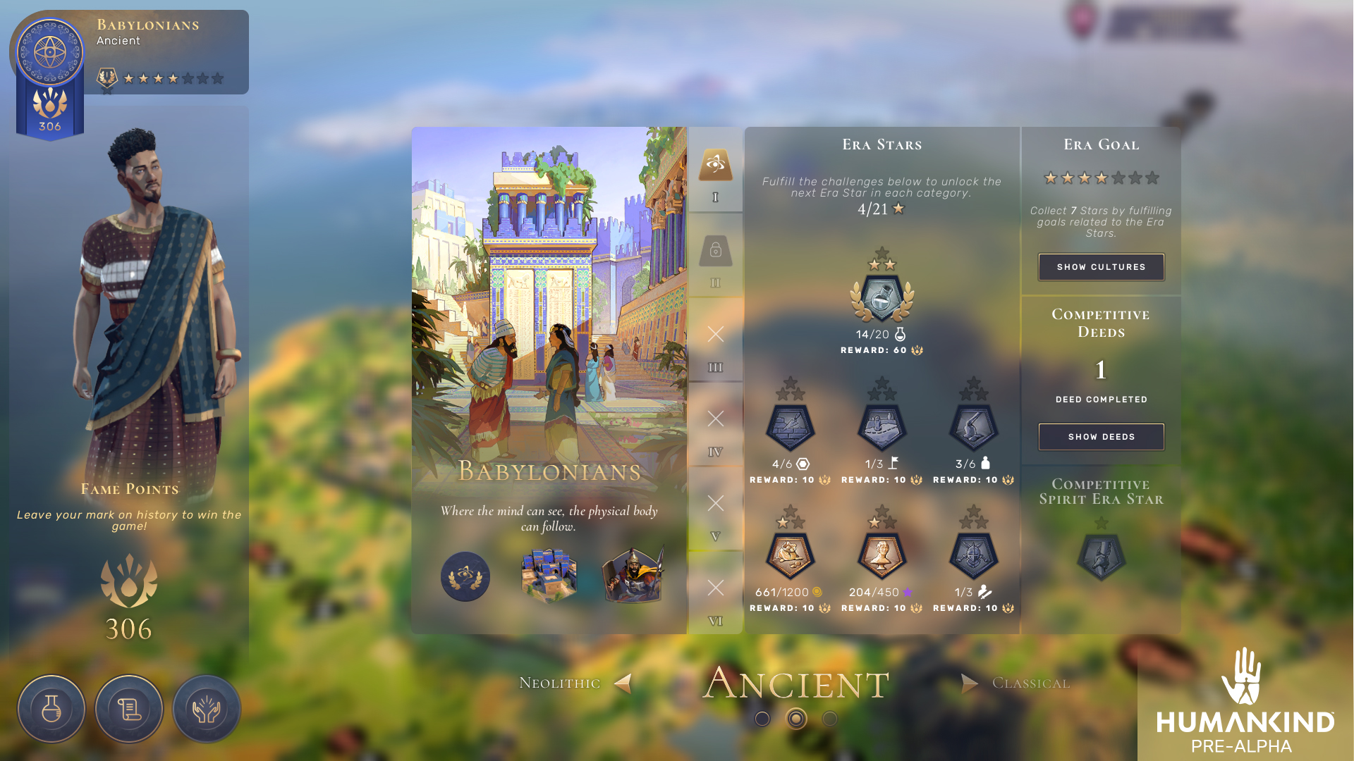 À chaque fois que vous accomplissez divers défis ou êtes le premier à accomplir certains exploits (découvrir des merveilles naturelles, découvrir en premier des technologies clés, par exemple), vous gagnez des points de renommée : la Fame. La Fame, c’est tout ce qui compte dans Humankind. Le but d’une partie est d’être le joueur qui en a accumulé le plus à la fin, et tous les moyens sont bons pour y arriver.