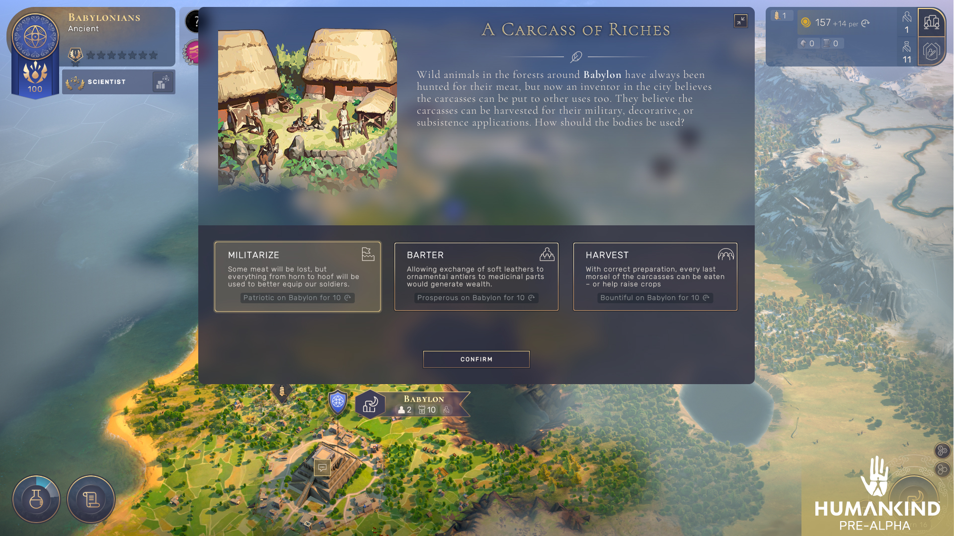 Bon, il subsiste des choix curieux, comme la volonté de réduire le nombre de villes au minimum et il n’est pas encore clair si la Fame servira à autre chose qu’être un score pour la fin de partie, mais la promesse de pouvoir laisser sa marque dans l’Histoire de façon organique avec des actes est tangible. Même s’il reste encore pas mal de mécaniques à implémenter ou à étoffer comme la diplomatie ou les combats (très similaires à Endless Legends), me voilà très curieux de découvrir la suite.