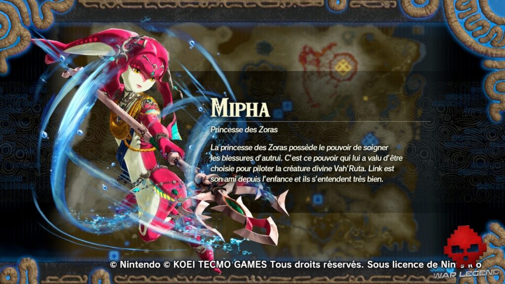 Il est possible d’incarner Link, Zelda ou l’un des Prodiges tels que Mipha ou Urbosa la Grande, chaque personnage usant de mécaniques uniques.