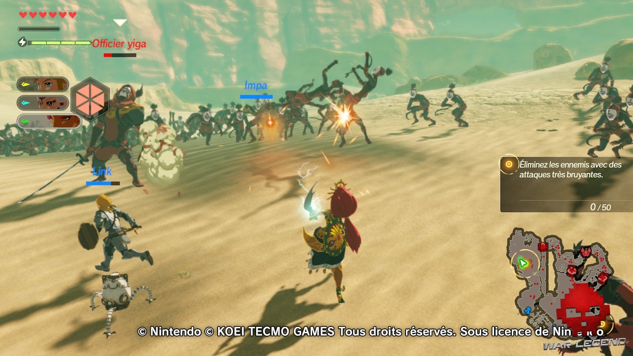 La carte d’Hyrule est exactement la même que Breath of the Wild, l’exploration libre en moins. On saute de mission en mission aux champs de bataille uniques, mais tout est fait pour rappeler que l’action évolue dans le jeu d’origine, quitte à revisiter des fragments de lieux iconiques.