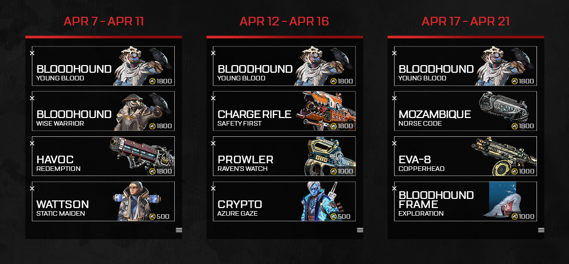 De son côté, l’événement Quêtes légendaires se tiendra du 7 au 21 avril prochain et proposera aux joueurs de combattre des rôdeurs lors des épreuves de Bloodhound afin de récupérer du butin de haut niveau. il faudra toutefois faire attention aux autres légendes qui viendront réclamer leur part.