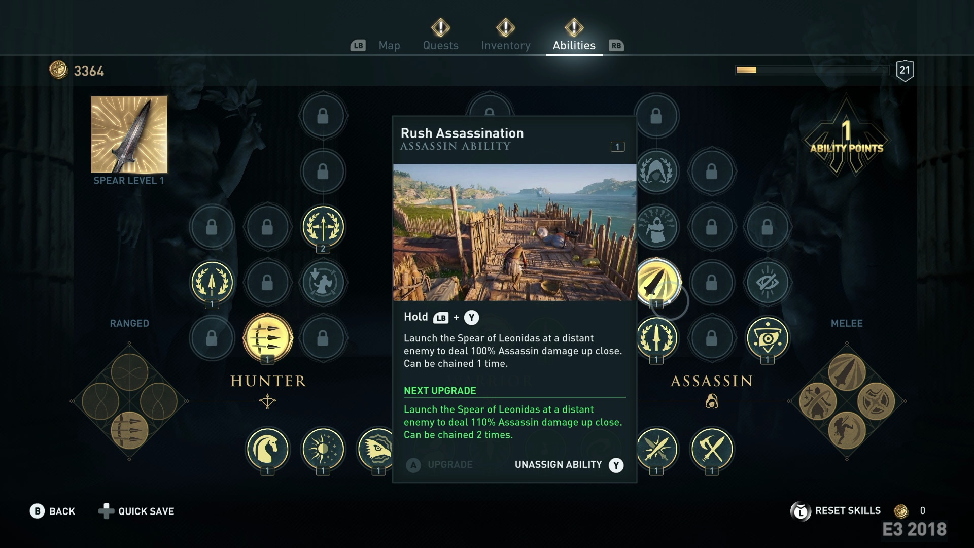 Ainsi, on peut voir de manière précise à quoi ressemblera l’épopée proposée par Ubisoft pendant la Grèce antique et nous avons enfin la possibilité de la comparer (un peu) avec son prédécesseur, Origins. L’interface semble très similaire et le côté évolutif RPG qui avait été introduit est toujours présent.