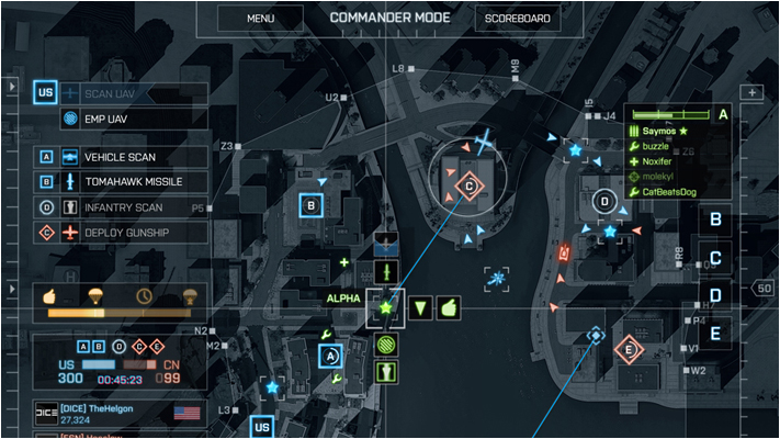 - Mode Commandant : un joueur en plus en multijoueur dans chaque camp (32+1 vs 32+1 au max donc). Celui ci prendra le rôle du Commandant, un mode de jeu pour donner des ordres ou effectués des actions spéciales (lancement de missiles, drone UAV pour spot les ennemis, l’AC-130 un point de respawn avec canon à déployer, larguer des véhicules, larguer de quoi soigner ou recharger…). Jouable sur PC mais aussi tablet et mobile (iOS, Android).
