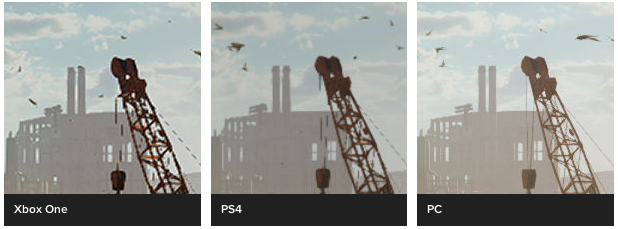 Et ci-contre deux séries d’images comparatives entre Xbox One, Ps4 et Pc
