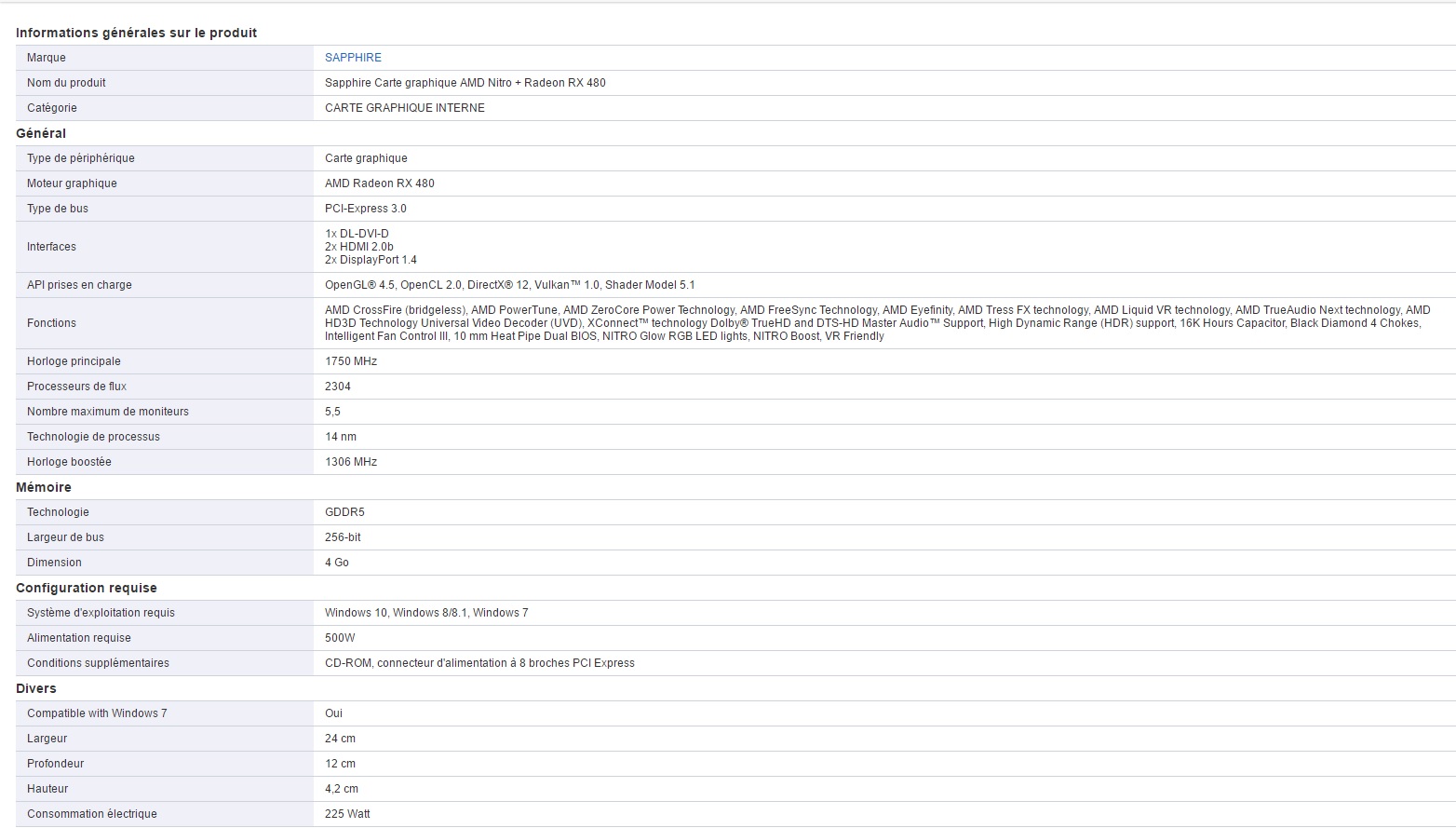 La Sapphire Carte graphique AMD Nitro + Radeon RX 480 4Go GDDR5 est disponible à 252,03€ 199€ chez cdiscount.