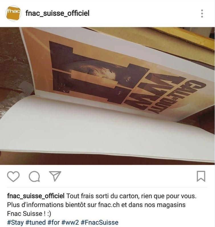 Après avoir relayé de soi-disant leaks de steelbooks et nouvelles rumeurs affirmant que le prochain Call of Duty serait bien un jeu se déroulant, comme à son origine, en pleine Seconde Guerre Mondiale, sachez que de nouvelles preuves viennent de faire son apparition sur les comptes Instagram officiels de la FNAC suisse et de l’ApeX Clan…