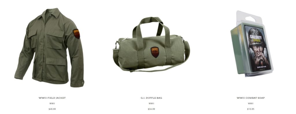 Vous pouvez d’ores et déjà vous procurer toute une fournée de goodies via la boutique officielle Call of Duty. Si certains comme la veste d’infanterie ont l’air assez sympathiques tout en étant proposés pour un prix correct, d’autres comme le « savon de combat » peuvent nous laisser… perplexes (un tube de vaseline pour bientôt ?).