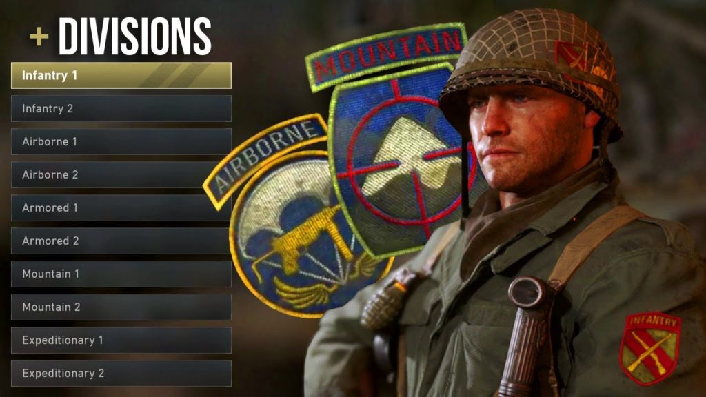 « Le système de Divisions redéfinit fondamentalement la manière dont les joueurs s’investissent dans leur carrière multijoueur. C’est une nouvelle version du système « Créer une classe », les joueurs choisissent parmi cinq divisions emblématiques de la Seconde Guerre mondiale qui possèdent chacune leur entraînement au combat, leur formation et leurs compétences d’armes. Cette approche simplifiée du multijoueur permet aux joueurs de renforcer leur style de jeu personnel en dominant l’ennemi dans le plus grand conflit mondial.«
