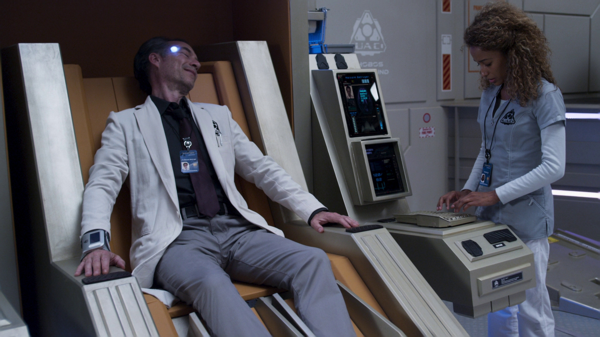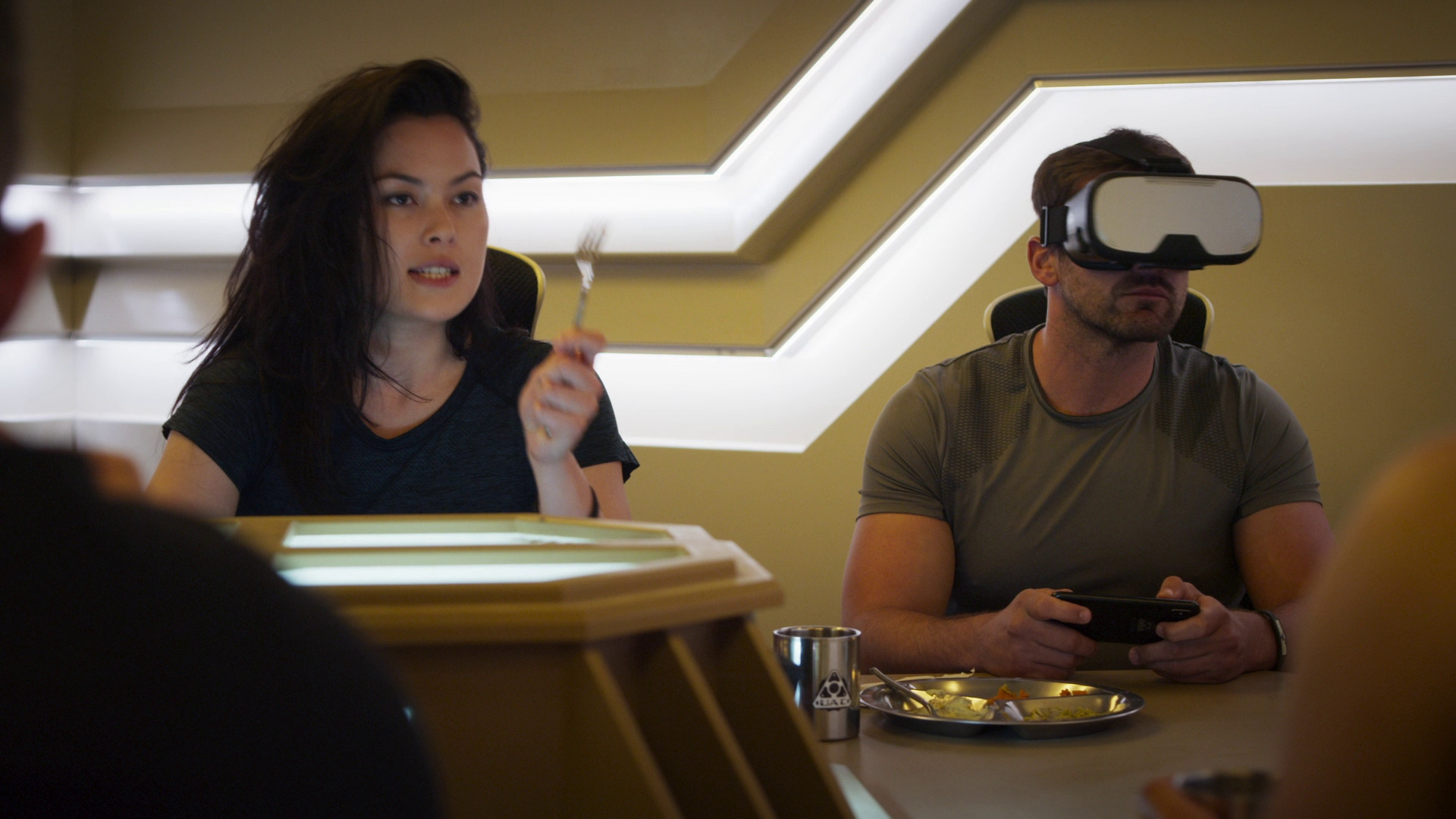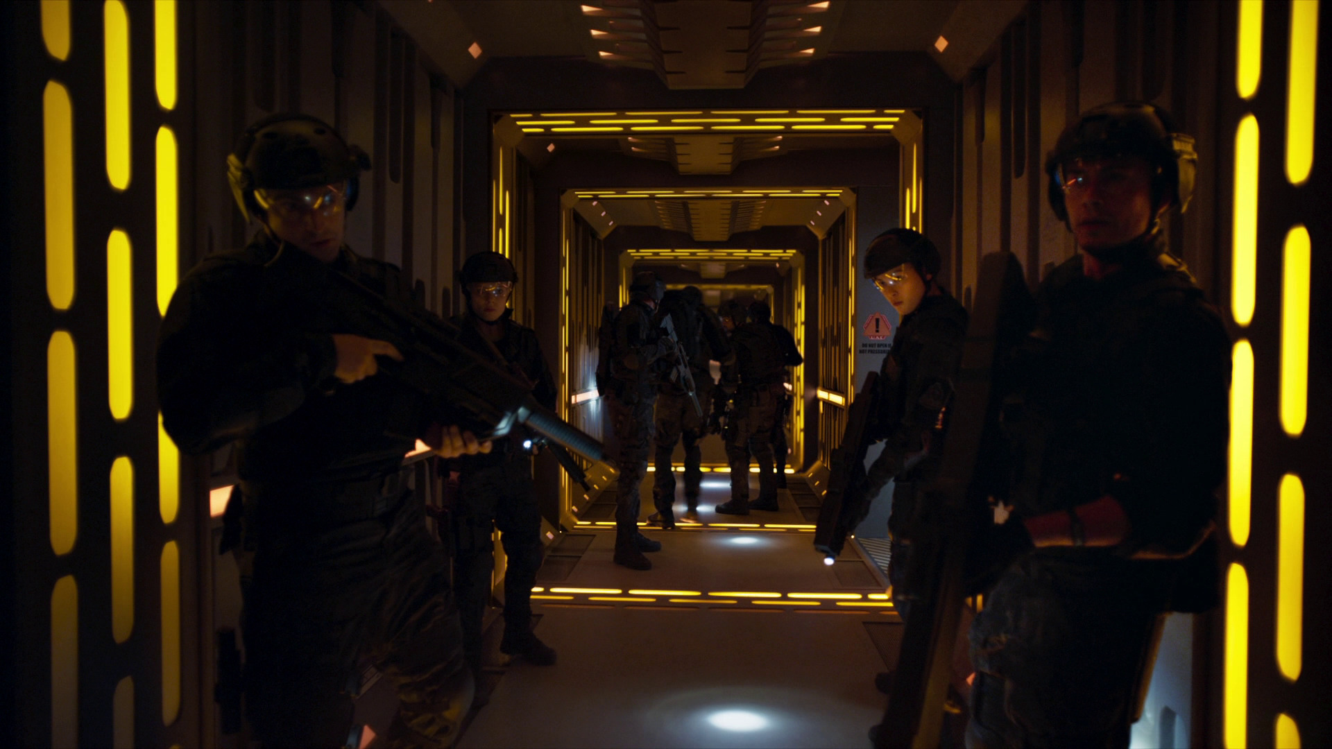 C’est simple, la première scène du film — après une introduction qui présente l’expérience sur la téléportation où tout part en cacahuète — nous montre une escouade de marines autour d’un petit déjeuner en sortant d’hypersommeil. Cette scène a forcément l’ambition de donner une personnalité et une psychologie aux différents personnages, puisqu’elle est calquée sur celle d’Alien. À part le gros black baraqué, aucun des personnages n’est vraiment stéréotypé, ce qui devrait être une force est plutôt une faiblesse, mais tous les membres de l’escouade sont finalement insipides et on se fout bien de ce qui pourra — et va — leur arriver. C’est difficile à argumenter parce que je n’ai vraiment rien à dire, tellement c’est plat. Mais genre, vraiment rien.