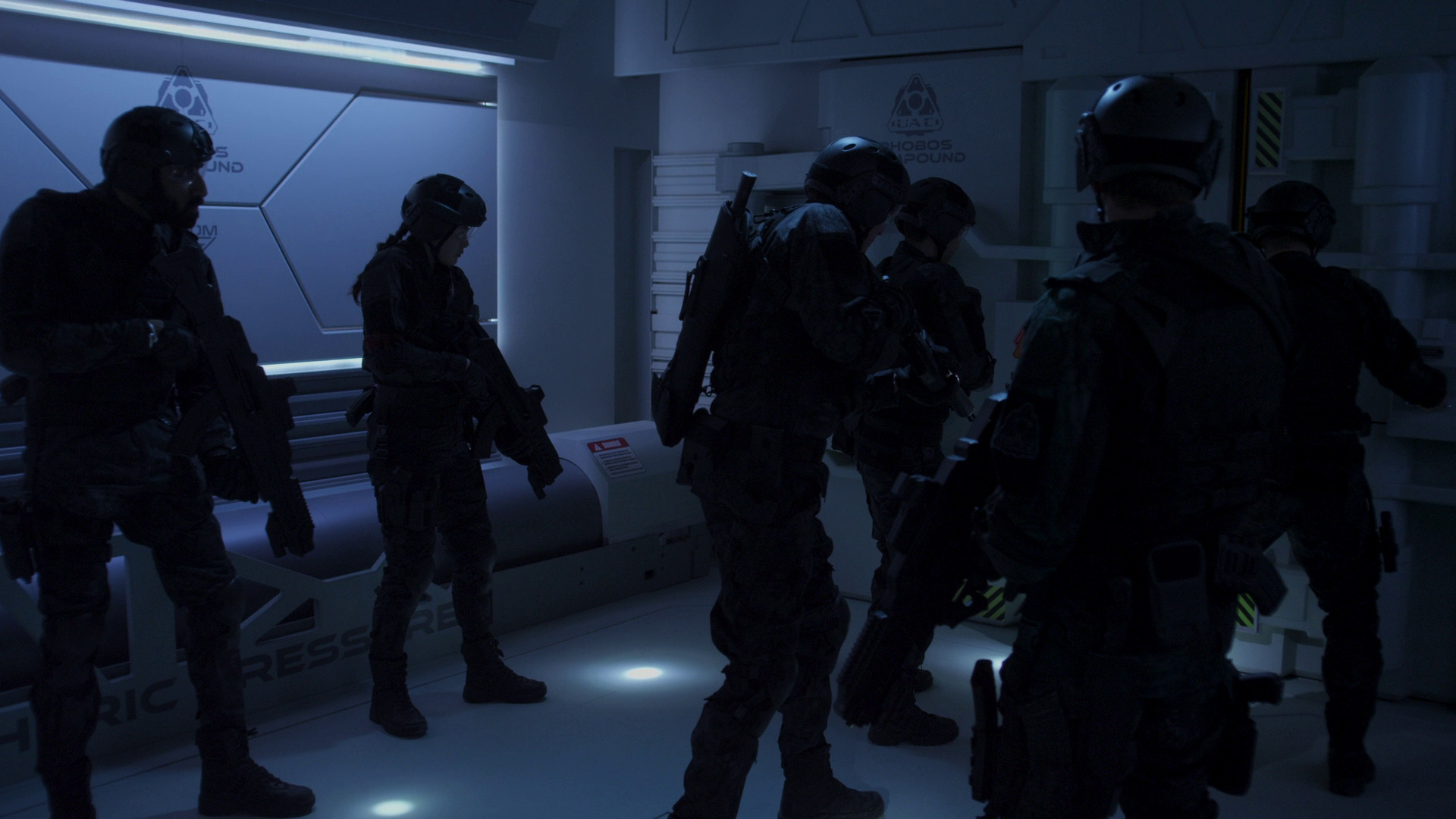 Je sais que le film est low budget, mais ça n’arrange clairement pas son affaire : on ne sent pas vraiment l’envie de bien faire. Je ne sais pas si vous avez déjà participé à un laser game ou une escape room récemment, mais je peux vous assurer que les décors de Doom: Anihilation sont du même acabit. En ajoutant les accessoires et les costumes dans le tas, c’est MÉGACHEAP™.