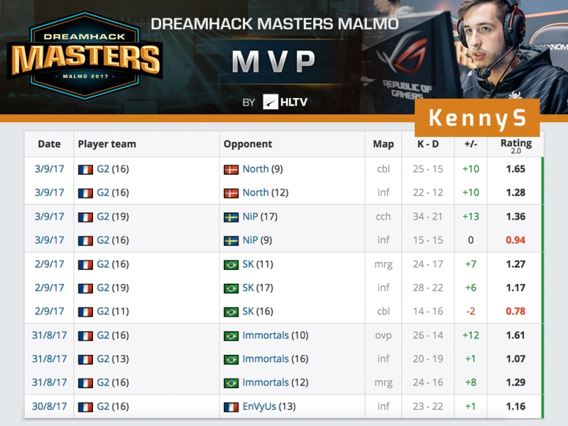 Remake de la finale de l’ESL Pro League saison 5 entre North et G2 Esports (cette fois-ci en trois cartes). Une fois de plus, c’est en faveur des français que cette finale va pencher. Après deux cartes où le sérieux et la rigueur sont au rendez-vous, nos compatriotes décrochent le titre de la DreamHack Masters Malmö.