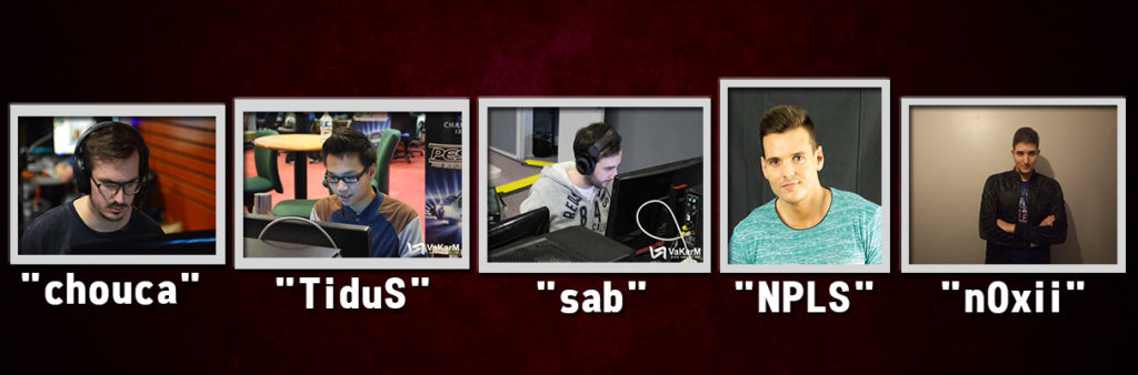 Les joueurs CS:GO de l’équipe War Legend : Guillaume « TiduS » T. ; Maxime « chouca » V. ; Jérôme « NPLS » C. ; Kevin « sab » B. ; Dylan « nOxii » S.