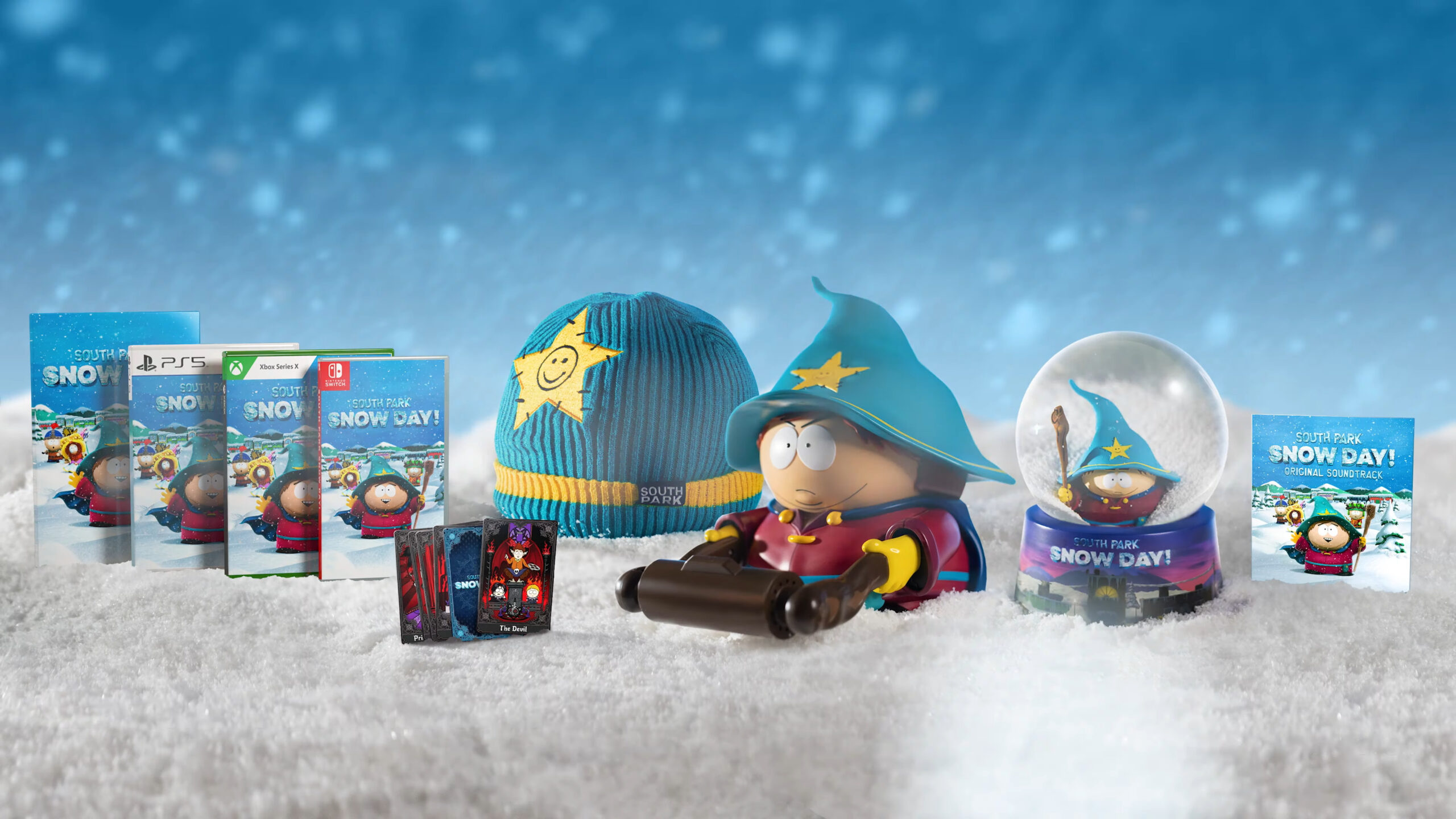 Pour sa défense, il est plutôt bien fourni : jeu de base, 6 cartes de tarot, un exemplaire de la bande-son, un globe à neige, une réplique hideuse du bonnet d’Eric Cartman, et même un porte-PQ à son effigie. Il y a de quoi faire. Pas de Season Pass en revanche, à moins qu’il ne s’agisse d’un oubli, mais 220 euros, dans le fond ce n’est pas si cher payé pour savourer le regard affligé du facho en chef quand on s’essuie le popotin.
