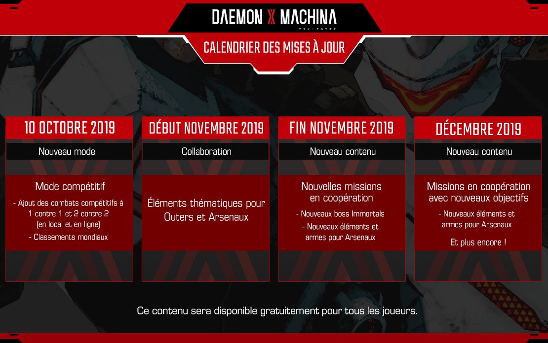 Sorti en septembre dernier avec un succès critique plutôt mitigé, Daemon X Machina ne compte pourtant pas se laisser abattre et déploie dès aujourd’hui la première mise à jour de sa feuille de route.