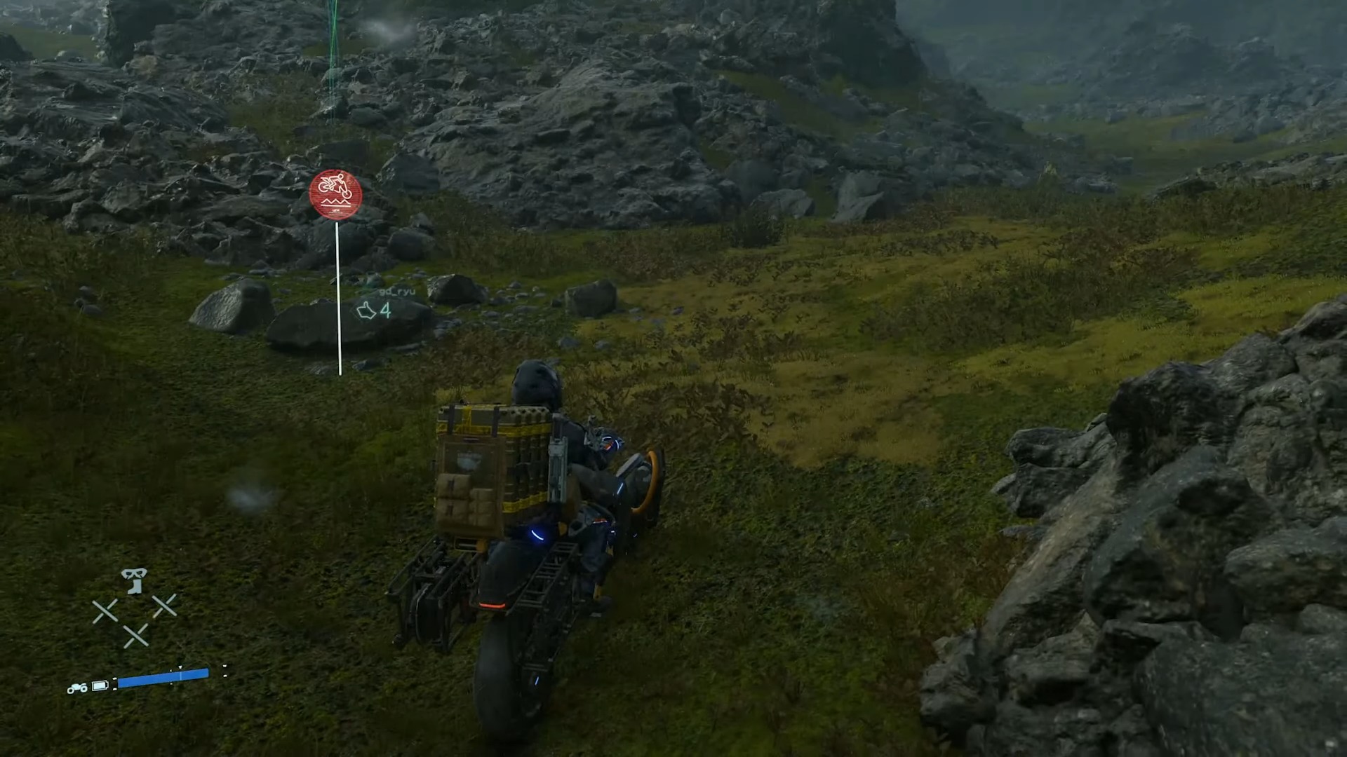Mais là où Death Stranding surprend, c’est dans sa façon de « reconnecter le monde », comme Kojima l’avait promis. Une chose que l’on remarque, c’est le vide de ce monde : il est très grand, mais on n’y trouve pour ainsi dire rien ou presque. En réalité, les grandes étendues verdoyantes et rocheuses sont offertes aux joueurs pour qu’ils puissent y construire leurs propres structures, un peu à la manière d’un Conan Exiles et consorts.