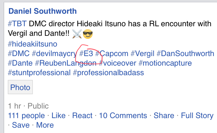 Pour commencer, l’acteur vocal de Virgil, Daniel Southworth, a partagé sur les réseaux sociaux une photo de lui en compagnie de Reuben Langdon (Dante) et de Hideaki Itsuno, directeur de la série qui a repris le flambeau après la départ de Hideki Kamiya et de Shinji Mikami de Capcom. La photo a été repérée par un membre de ResetEra (encore une fois).