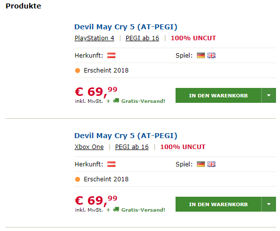 Deuxième élément à charge, le revendeur autrichien Gameware (connu pour avoir tenu tête à Microsoft face au Xbox Game Pass) liste actuellement Devil May Cry 5 sur son site, sans pression. Vous pouvez déjà précommander le jeu. La date de sortie a été fixée à courant 2018.