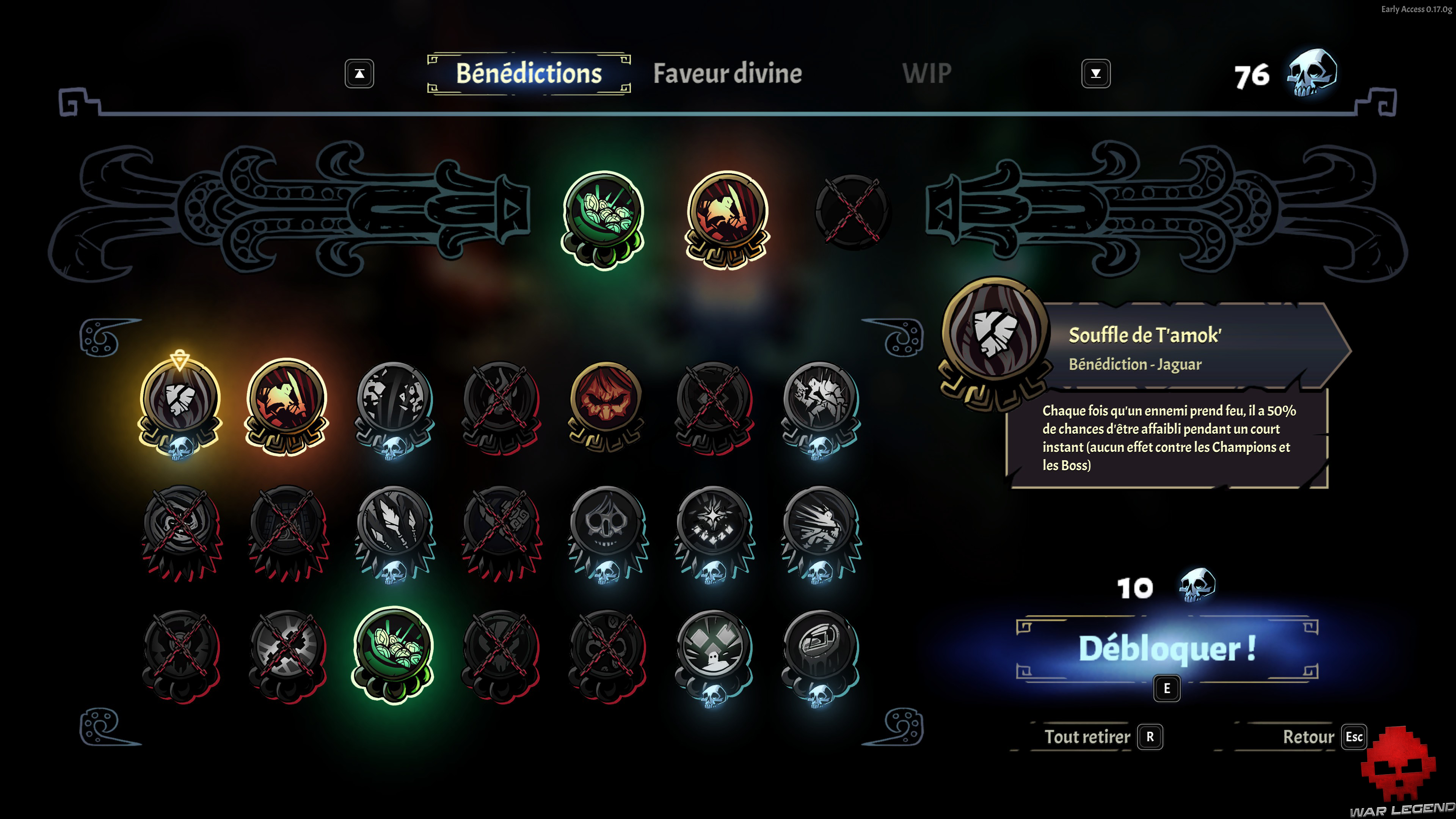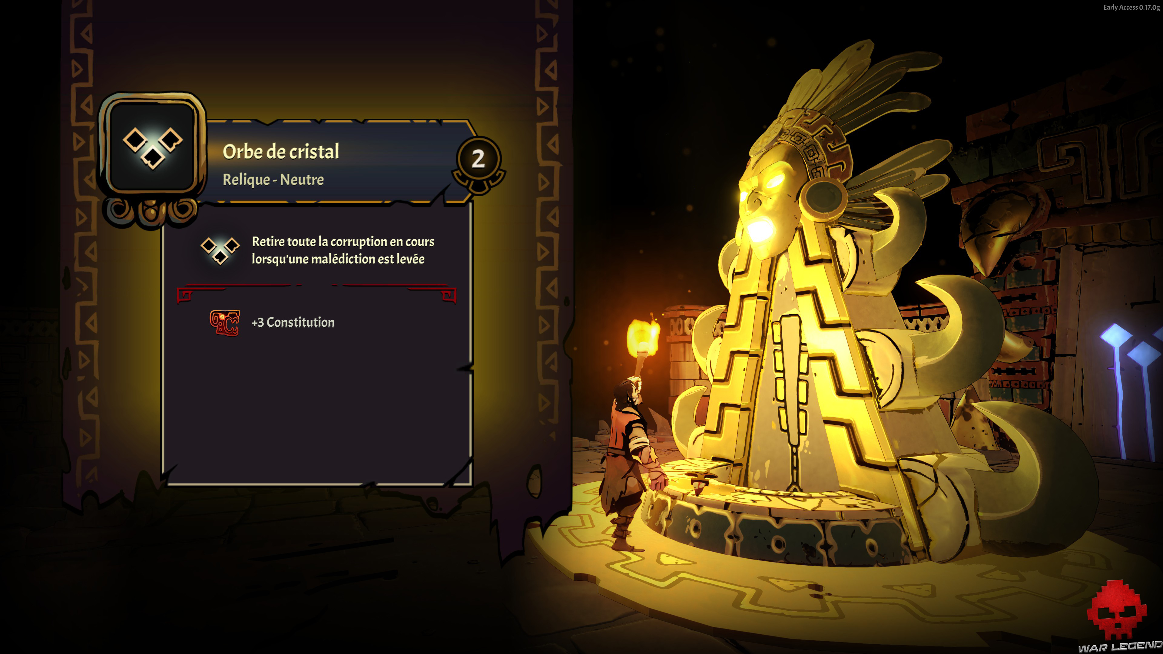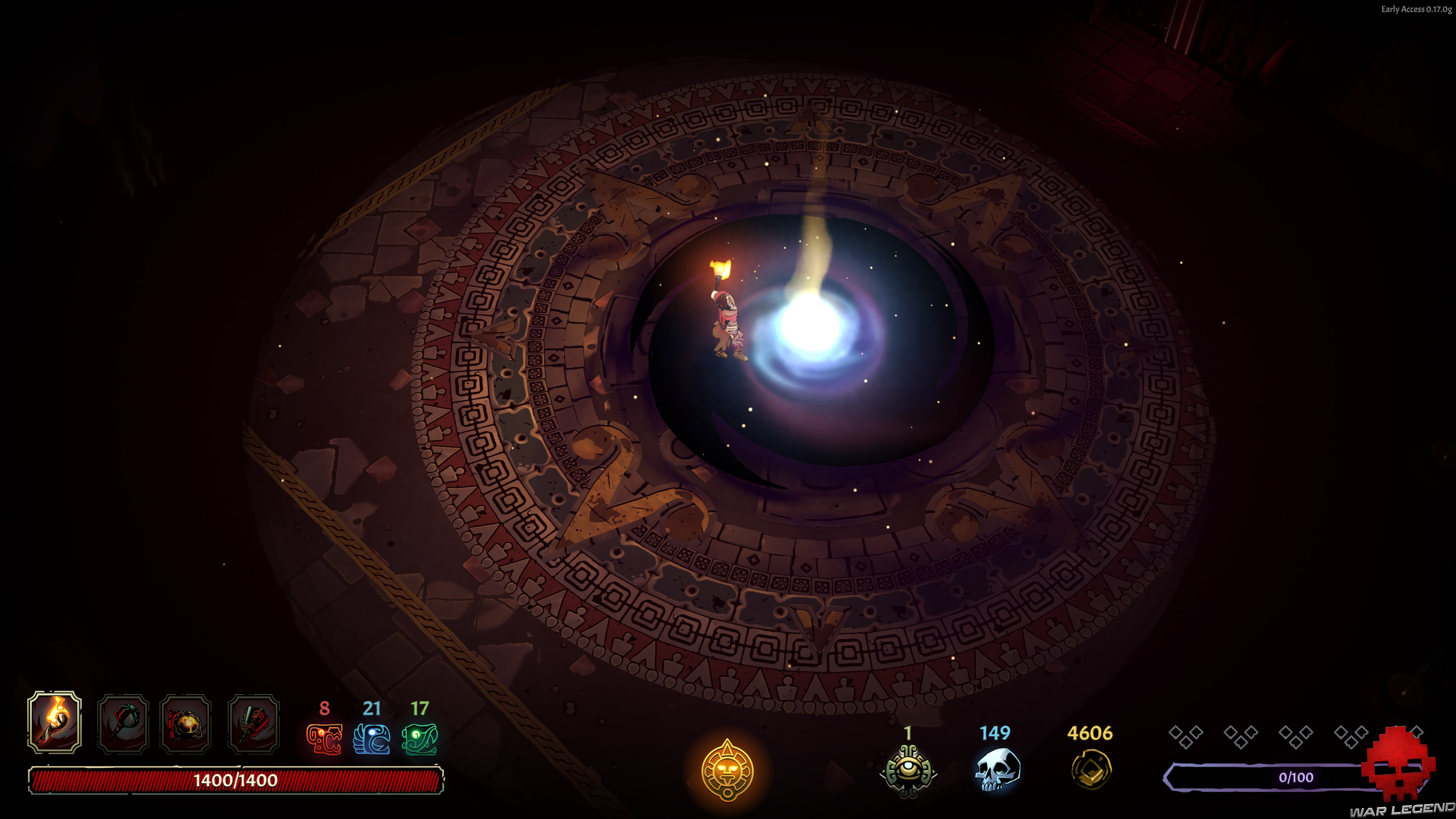 Nous avons affaire à un hack ‘n’ slash plus vitaminé qu’un bol d’Ovomaltine proposant des runs de donjons en mode répétition. C’est-à-dire que notre héros revient toujours au hub initial quel que soit son sort. À partir de là il choisit une branche du temple maudit ainsi qu’un donjon plus ou moins long au sein de celle-ci. Pour l’heure, 1 seule section du jeu est disponible, à savoir celle du Jaguar. Celle du Serpent sera la prochaine, et la dernière demeure inconnue à ce jour.