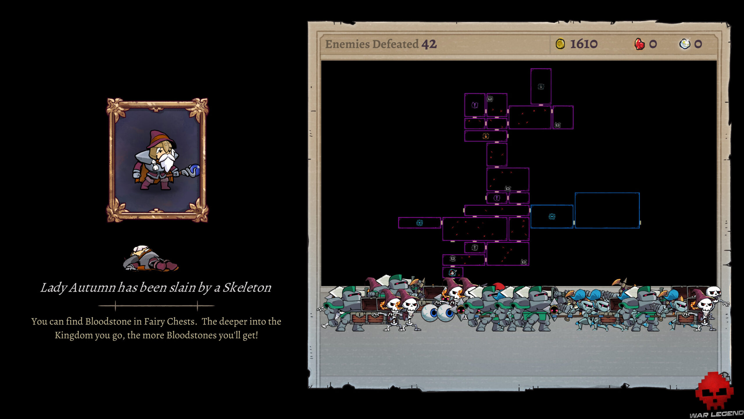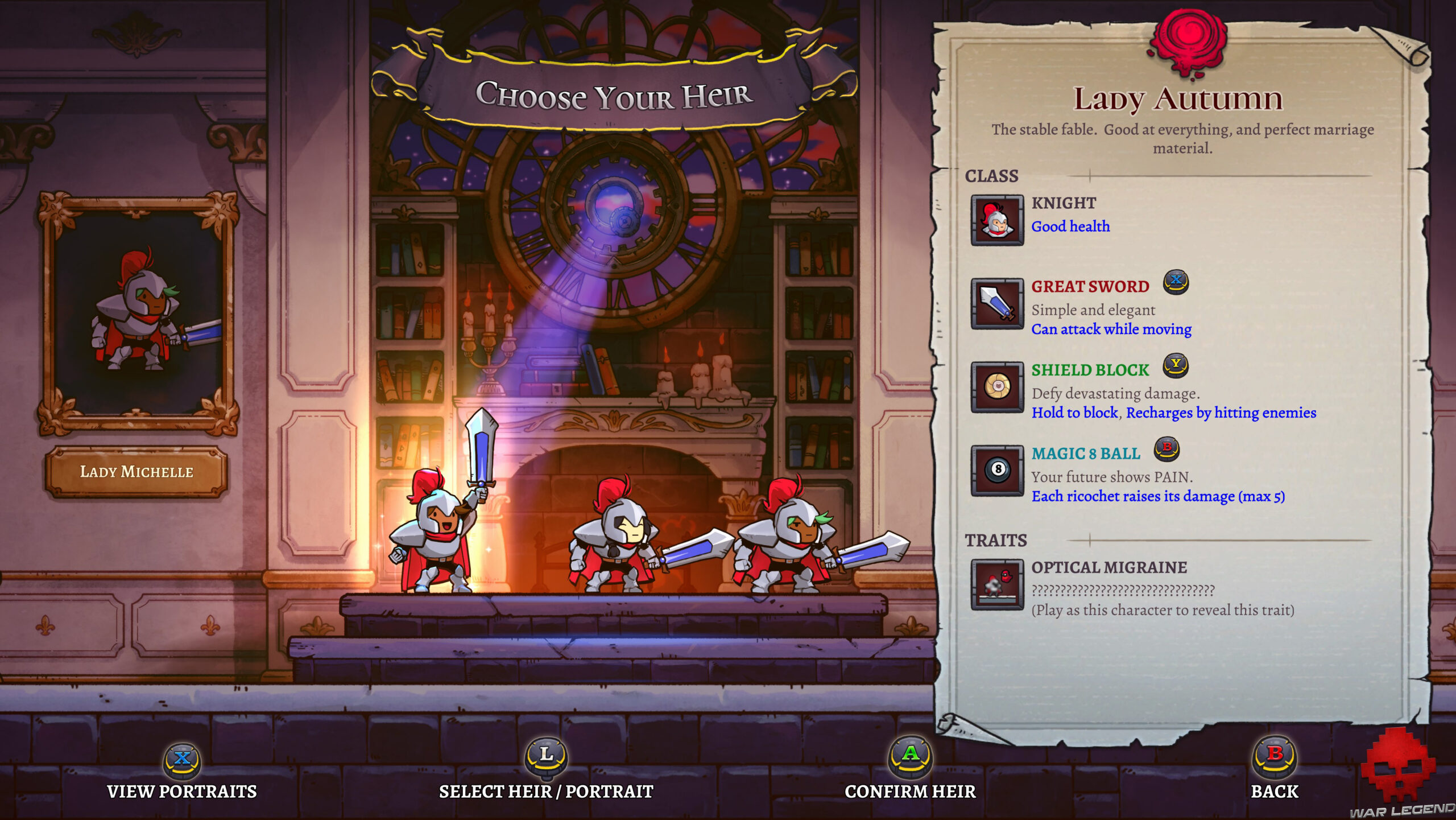 Le but dans le nouveau jeu de Cellar Door Games est de comprendre et lever une malédiction qui pèse sur votre lignée. Le hic, c’est que presque tous les héritiers sont affectés de « traits » plus ou moins handicapants – parfois, ils peuvent vous aider, comme l’hyperflatulence (oui) qui vous fait lâcher des gaz plutôt ravageurs…