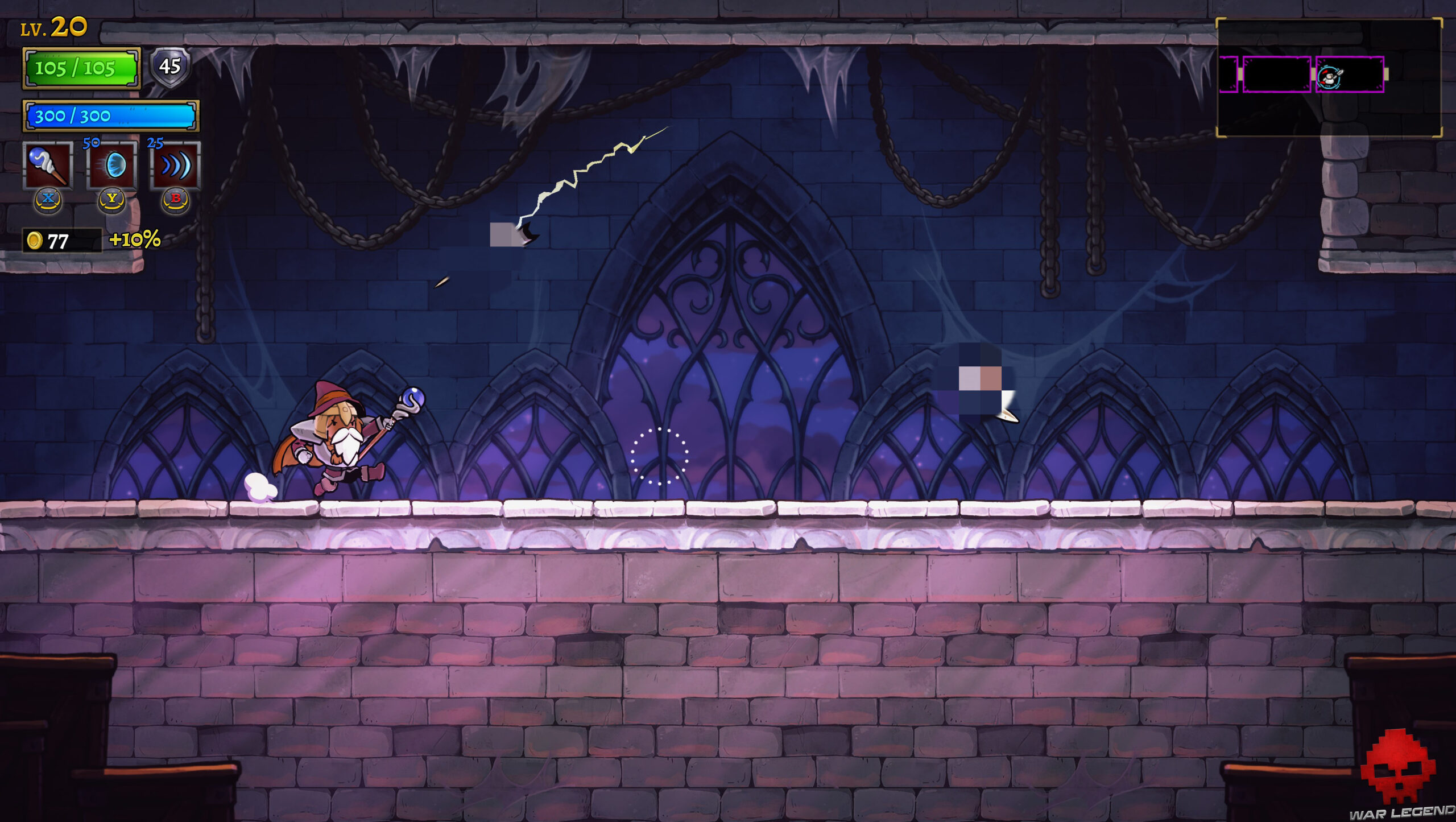 Car c’est un ajout substantiel pour Rogue Legacy 2 : on trouve désormais plusieurs classes plus affirmées que par le passé. Dans Rogue Legacy premier du nom, on gardait quoi qu’il arrive l’épée emblématique. Ici, le mage dispose d’un bâton magique qui provoque des explosions à distance, l’archer tire des flèches, etc. Voilà bien quelque chose qui m’avait vraiment manqué dans le volet précédent. Cela permet de varier le gameplay en offrant différentes façons de jouer et d’appréhender les combats, en particulier contre les boss.