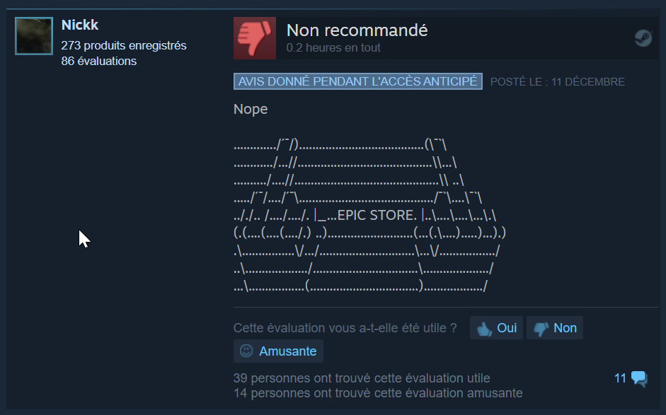 En tout cas, Epic Games Store ou pas, Hexen avait bien apprécié son premier contact avec le rogue-lite. Le titre est toujours en accès anticipé et donc incomplet, mais les joueurs sont déjà ravis du résultat, si on croit les reviews utilisateurs, et puis il y a ce connard. Les gens sont tellement prévisibles.