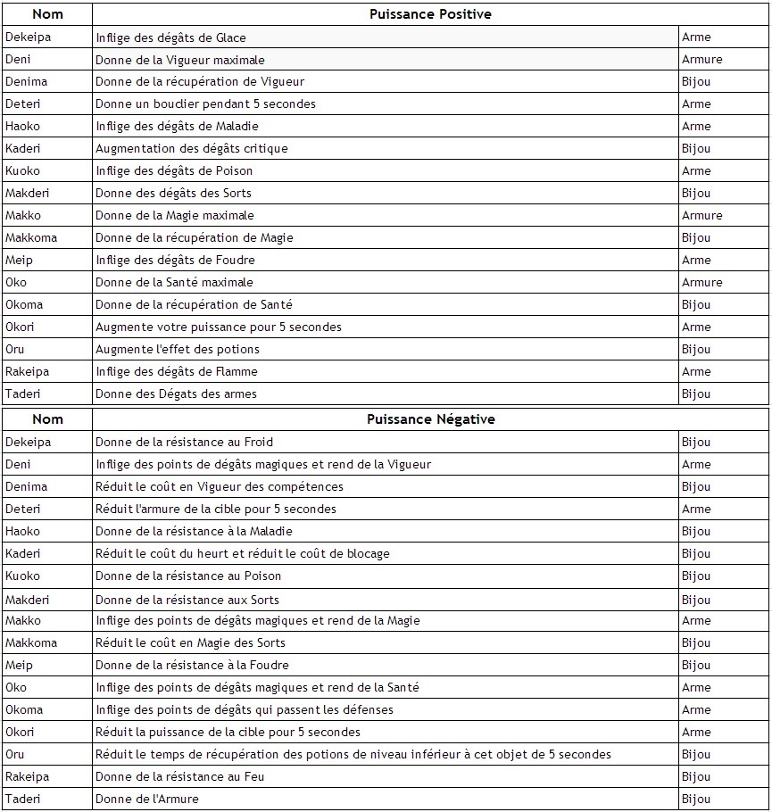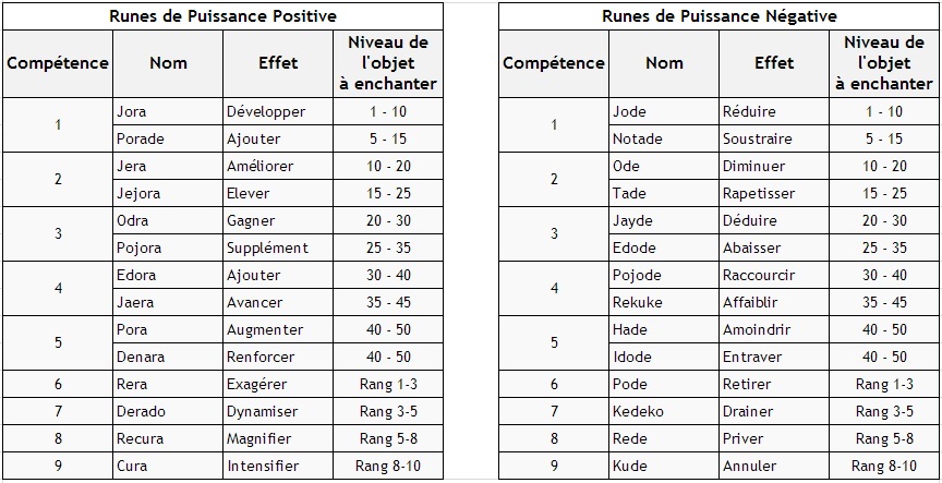 Les runes de puissance fixent le niveau de l’objet à enchanter et la nature de l’effet, positif ou négatif, du glyphe créé. Plus le niveau est élevé, plus l’effet sera important. Il existe deux types de runes de puissance, les runes de puissance positive et les runes de puissance négative :