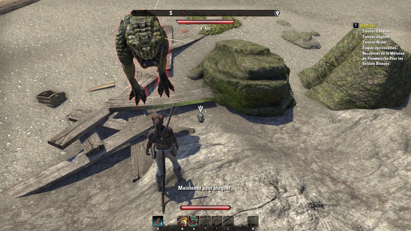 Edhelas est le plus au Sud, Nistël est plus haut sur la plage, à l’Ouest du point du Temple de la Danse des Deux Lunes. Onglorn se trouve sur la plage à l’Ouest du point du Ressac des Veuves. Il vous apprend que le Lieutenant Gélin est parti explorer une grotte pour trouver un refuge. Retrouvez-le au fond de la caverne au serpent géant. Il est mort très récemment, et son corps est lacéré. Retrouvez le Sergent à l’extérieur et expliquez lui ce que vous avez trouvé. Elle vous envoie chercher de l’aide auprès des marins d’un autre bateau échoué un peu plus loin à l’Ouest. Vous rencontrez le Quartier-Maitre Oblan et avertissez-le du danger. Il vous demandera du renfort et vous pourrez ainsi aider en donnant un coup de main aux réparations du navire et en retrouvant l’instrument de navigation volé par un pillard. Parlez-en à Firion, elle vous désignera qui dans son équipe pourra s’en charger à votre place. Il ne vous restera plus qu’à trouver une roue de gouvernail à l’Ouest. Vous trouverez aussi un éclat Céleste. Retournez voir le Quartier-Maître qui vous enverra voir son capitaine sur le pont supérieur du bateau. Elle vous révèlera qui est à l’origine de la mort du lieutenant Gélin. Les Vipères marines l’avaient enlevé, une éclaireur l’a vu. Allez lui parler, en bas à l’intérieur des cales. Mastengwë a vu les Vipères marines enlever ses amis pour préparer un rituel pour déchaîner un ouragan. Pour se protéger des éclairs, ils portent des magnétites. Il vous faudra donc vous en procurer pour sauver les deux camarades de l’elfe.Dirigez-vous donc vers le Nord-Ouest, vous trouverez une magnétite en tuant des Vipères marines. Puis, montez dans le bateau, tuez Jyklos et délivrez Virkvild et Suhr pour mettre fin au rituel. Retournez voir le capitaine Jimila de votre victoire.