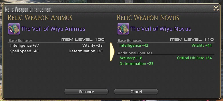 Après avoir obtenu votre arme Animus, équipez-la et parlez à Jalhzan au Moulin des bois. Celui-ci aura une nouvelle quête à vous confier pour améliorer votre relique. Après quelques aller-retour il vous sera demandé de réunir trois encres enchantées de haute qualité (achetable auprès d’Auriana à Mor Dhona pour 250 martiaux l’unité) afin de créer un parchemin stellaire.