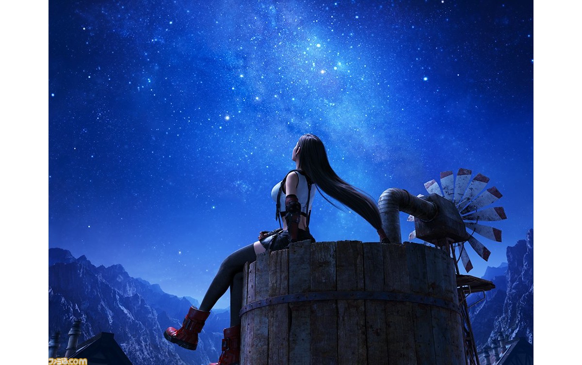 C’était surtout l’occasion pour l’équipe de montrer une comparaison de zones et de moments clés bien connus par les joueurs, comme le cimetière de trains, Tifa observant le ciel étoilé de Nibelheim assise sur son puits, où le terrible flashback qui montre Sephiroth mettre le village à feu et à sang.