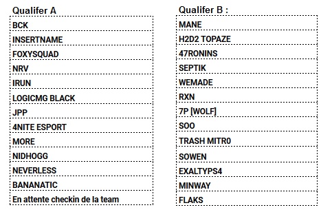 Teams pour le War Legend’s Tournaments Qualifiers du Jeudi 19 Avril :
