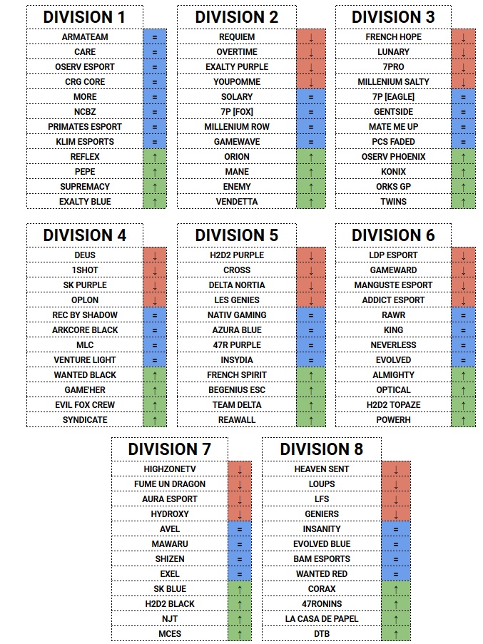 Voici les divisions pour le quatrième jour de cette semaine, Jeudi 17 Mai avec les Up and Down suite aux résultats du Mercredi 16 Mai :