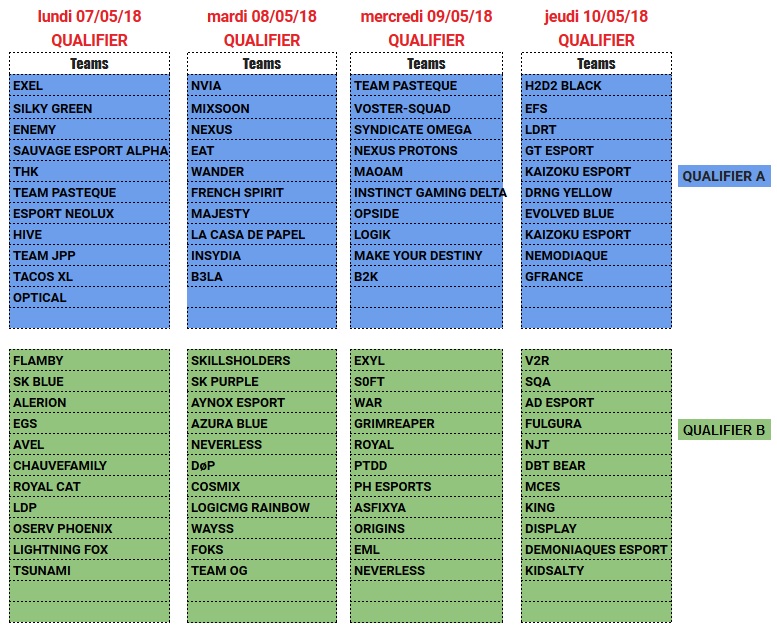 War Legend Tournaments Divisions et Qualifiers de ce Mardi 8 Mai :