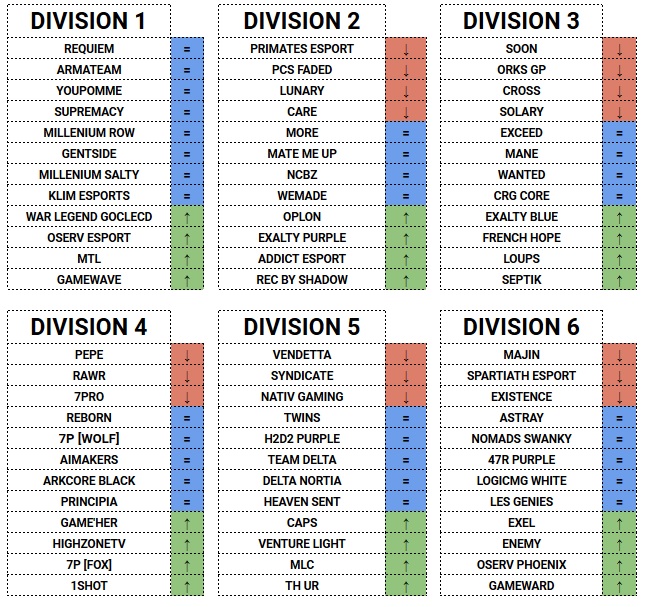 Voici les divisions pour le deuxième jour de cette semaine, Mardi 8 Mai avec les Up and Down suite aux résultats du Lundi 7 Mai :