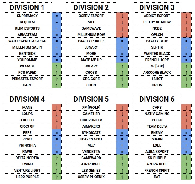 Voici les divisions pour le deuxième jour de cette semaine, Mercredi 9 Mai avec les Up and Down suite aux résultats du Mardi 8 Mai :