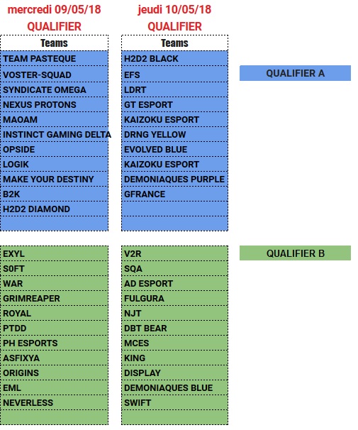 War Legend Tournaments Divisions et Qualifiers de ce Mercredi 9 Mai :