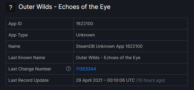 BAFTA du meilleur jeu de l’année 2019, les joueurs qui ont apprécié Outer Wilds savent que cette nouvelle est particulièrement inattendue. Si l’expérience offerte par le jeu ne semble pas particulièrement extensible, les fans ne diront pas non à un prolongement de l’aventure, quelque soit sa forme… à moins qu’il ne s’agisse d’un contenu d’une ambition bien plus modeste. Avec un simple nom et sans annonce officielle pour l’instant, il est impossible de savoir ce qu’il en retourne.