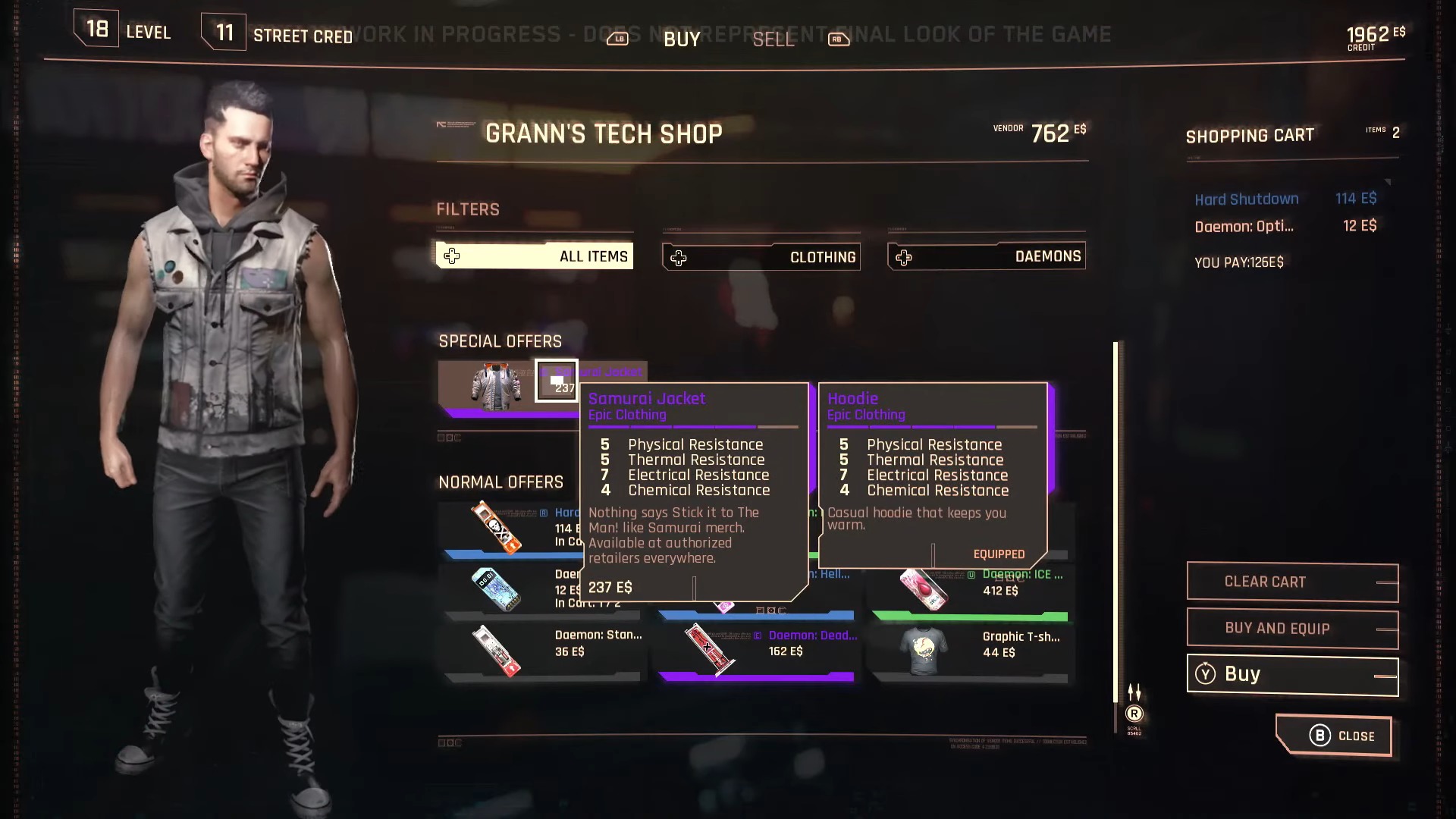 C’était aussi l’occasion de faire connaissance avec l’un des 6 grands districts de Night City : Pacifica. Ancien quartier résidentiel de luxe laissé à l’abandon, la plèbe a envahi les rues et les immenses appartements. Il est dangereux de s’y promener, mais le marché noir y est extrêmement généreux. Le Street Cred sera important pour accéder au meilleur matos.