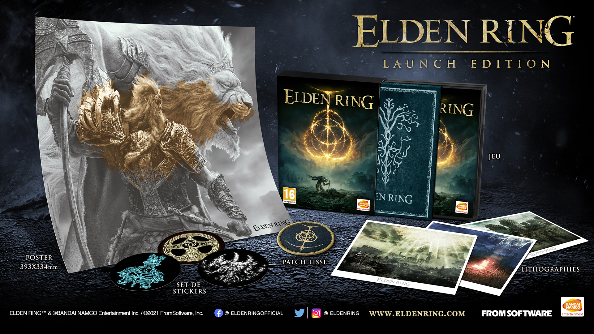 Pour terminer, l’Europe aura l’honneur de recevoir une version intermédiaire exclusive, uniquement sur consoles : la Launch Edition. Pour 69,99€, édition proposera un mini-poster de 33x39cm, 3 autocollants, un écusson brodé, 3 lithographies de lieux remarquables de l’Entre-Terre et un steelbook alternatif exclusif à cette édition.