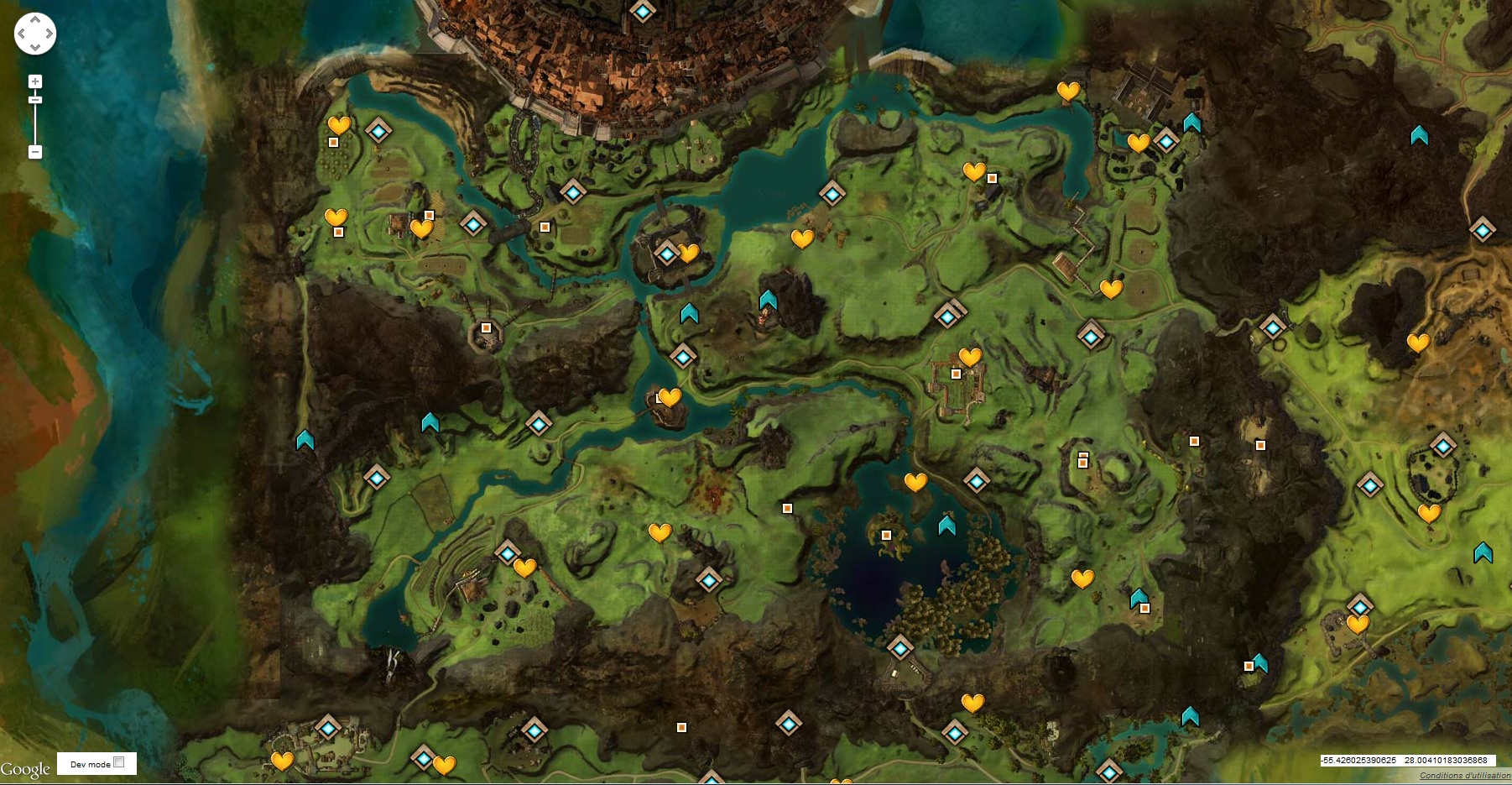 Dans ce gigantesque océan de vide concernant l’actualité de Guild Wars 2, un frêle radeau pointe à l’horizon : un joueur, b00mb0, a eu l’idée de réaliser une carte interactive du monde de Guild Wars 2 en utilisant Google Maps ! Bien moins brouillon que la carte d’IGN, ce projet est bien sûr participatif, si vous avez des facilités en anglais vous pouvez d’ailleurs aider le projet ici.