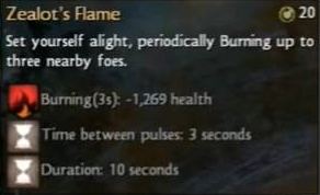 Ignite your foe with a fireball. Puts your Zealot’s Flame into a 40 second recharge. |