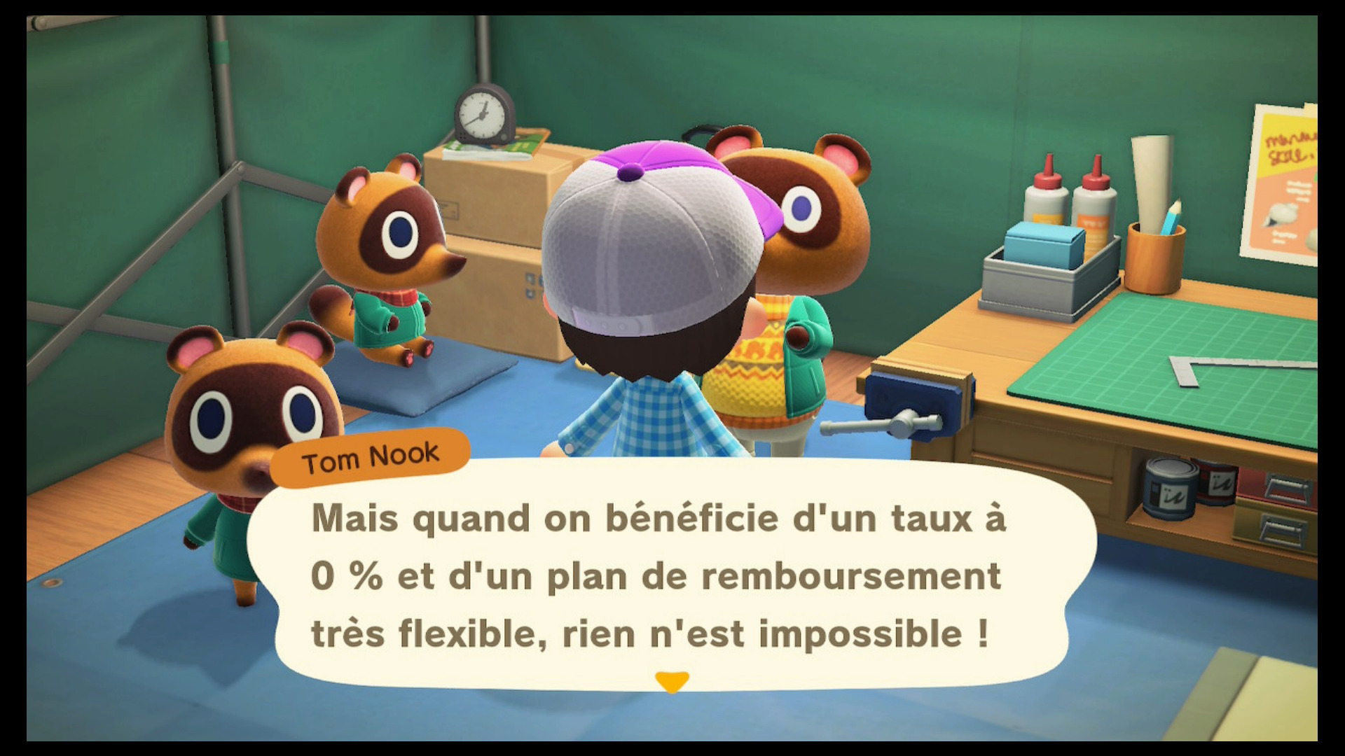Dans Animal Crossing: New Horizons, il est toujours question d’emprunter des Clochettes à Tom Nook pour agrandir sa maison. Cette fois, la formule a été poussée à l’extrême.