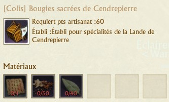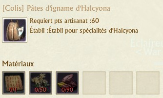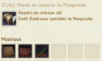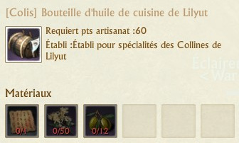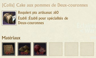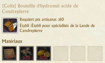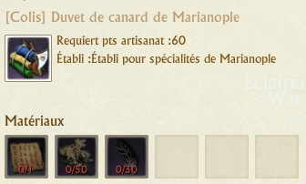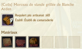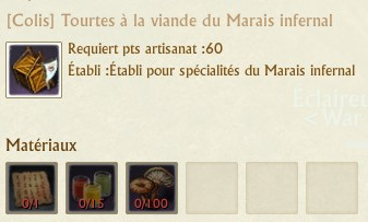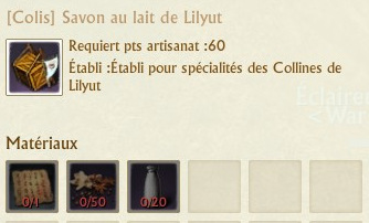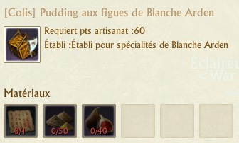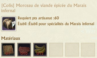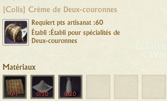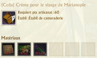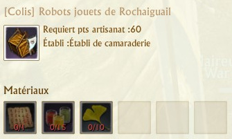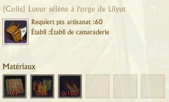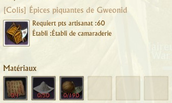 Les colis se fabriquent sur des établis de spécialités que vous trouverez dans chaque région. La fabrication de chaque colis requiert 60 points d’artisanat.