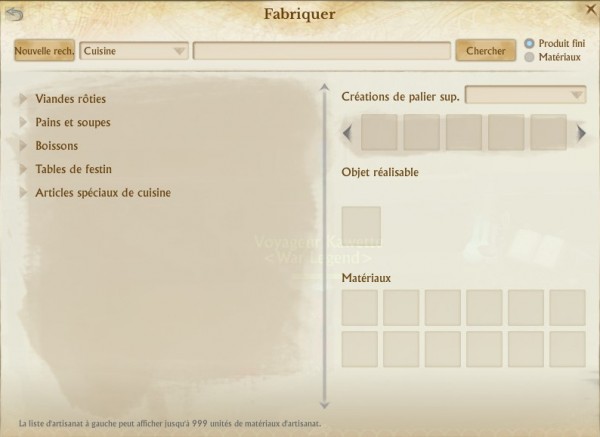 Pour monter votre métier, il suffit de fabriquer sur les ustensiles de cuisine (image ci-dessus) des nourritures et/ou boissons de rang 1 (qui vous demanderont moins d’ingrédients), les rangs supérieurs ne vous apporteront pas plus d’expérience pour progresser au palier supérieur (tous les 10000 points d’expérience).