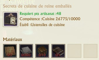 Vous devez avoir une compétence en cuisine de 20000 pour fabriquer cet objet.