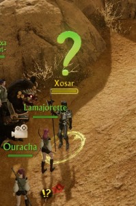 Quête « Premier contact » → Retrouvez Xosar sur la colline rocheuse près de la tour de guet.