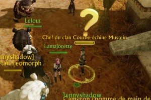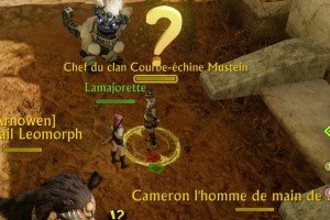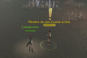 Quête « La force des Ceste-du-vent » → Éliminez le Lieutenant du clan de Ceste-du-vent, Votre objectif de quête devient → Faites votre rapport au Chef du clan Courbe-échine Mustein.